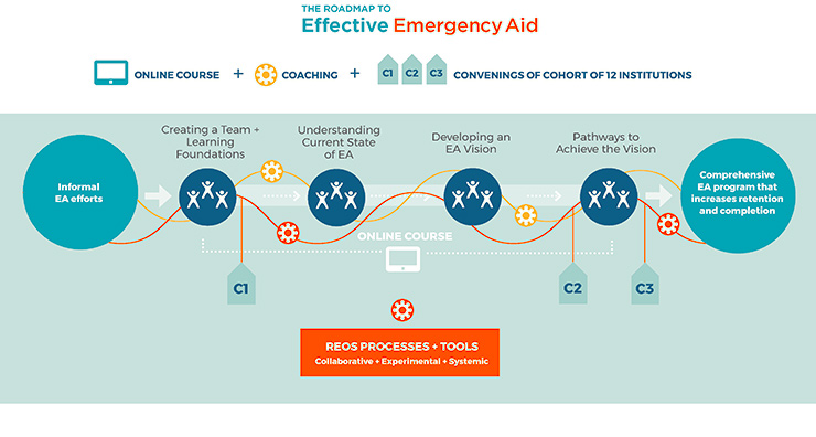 Reos Partners’ program, the Roadmap to Effective Emergency Aid, will provide colleges and universities with everything they need -- tools, resources, guidance, and collaborative and experimental practices -- to transform informal emergency aid efforts into a comprehensive program that drives results. The program will have three components: