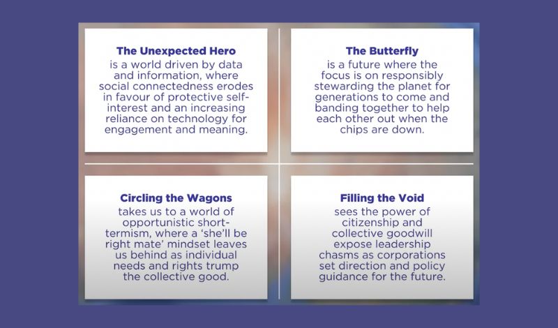 • The Australian Rural Leadership Foundation engaged Reos Partners to use the scenarios to help build leadership capability and resilience in drought-affected communities.